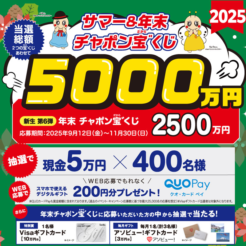 WEB応募:年末チャポン宝゛くじキャンペーンサイトからご応募ください。